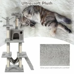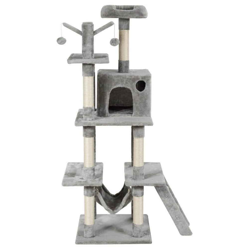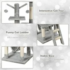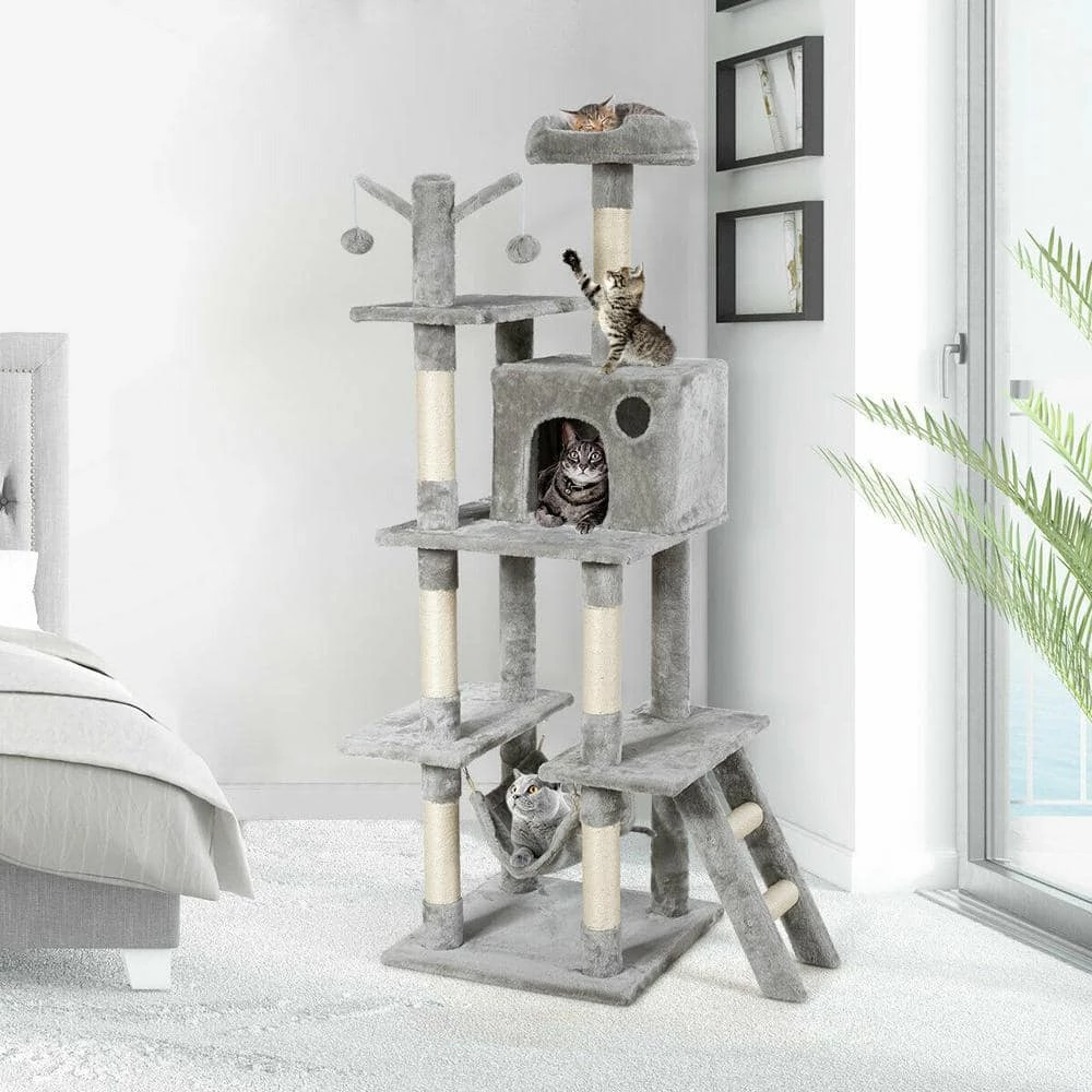Your furry friend needs a place that is exclusively their own. This 65 in. cat tree is suitable and ideal for kittens or cats of all ages to play and enjoy themselves. Multi-use cat activity center with sisal rope scratching posts, perches, basket, condo hideaway, climbable ladder, and hanging mouse toys for endless entertainment. Cat scratchers benefit both pet and owner by providing an acceptable release for an animal’s instincts while saving carpets and household furniture from harm. They provide a comfortable haven for security and rest, especially for timid cats that may need extra reassurance of their safety.
