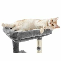 Our wooden multi-level cat tower is a versatile wonderland perfectly for your furry friends to stretch, climb and play to their heart’s content. It is designed to expand purring possibilities with the private and spacious cat condo, firmly dangling ball, durable sisal covered scratching posts and pad, along with the plush perch inspire your lazy kittens to be active for hours and hours. This all-in-1 activity center also comes with a cozy hammock and private roomy condo which bring endless warmth and ease for our cats.