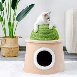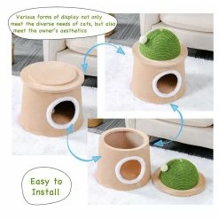- Stool design – due to the stool design, this cat tree has a very special appearance, when the green semi-circular side of the scratching board is facing up, the cat tree looks like a cactus, which is very cute in appearance