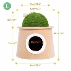 This is a cat cave house in the shape of a green cactus. The shape of this cat tree is like a stool. It can be used for cats and people to sit on it. It has a cute appearance and good practicability at the same time.