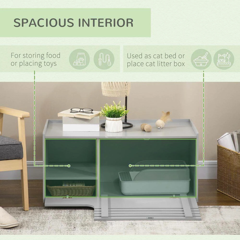 Provide your cat with the lighting they prefer. Your kitty sees best not in total darkness, not in bright lighting like we humans prefer, but in the dim in between. With a slitted wall, this design offers what makes furry felines most comfortable. Every time you close the door, the magnetism will do some of the work for you, making this PawHut cat litter end table a win for convenience. Paired with the illumination, the spacious interior makes the inside even cat-friendlier.