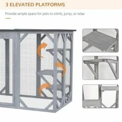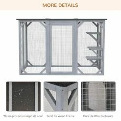 This PawHut cat house lets you open the back door patio for your kitties, giving them their own catio to roam around in. The large space can give furry felines a place to play while the sunlight streams in. Offering room to walk around, combined with triple tiered ledges, this mesh cat box enclosure will gift your pets the luxury of climbing and lounging in the fresh air. For their comfort, the asphalt roof protects against dreaded cat-hated rainwater, while the housing keeps them safe outside.