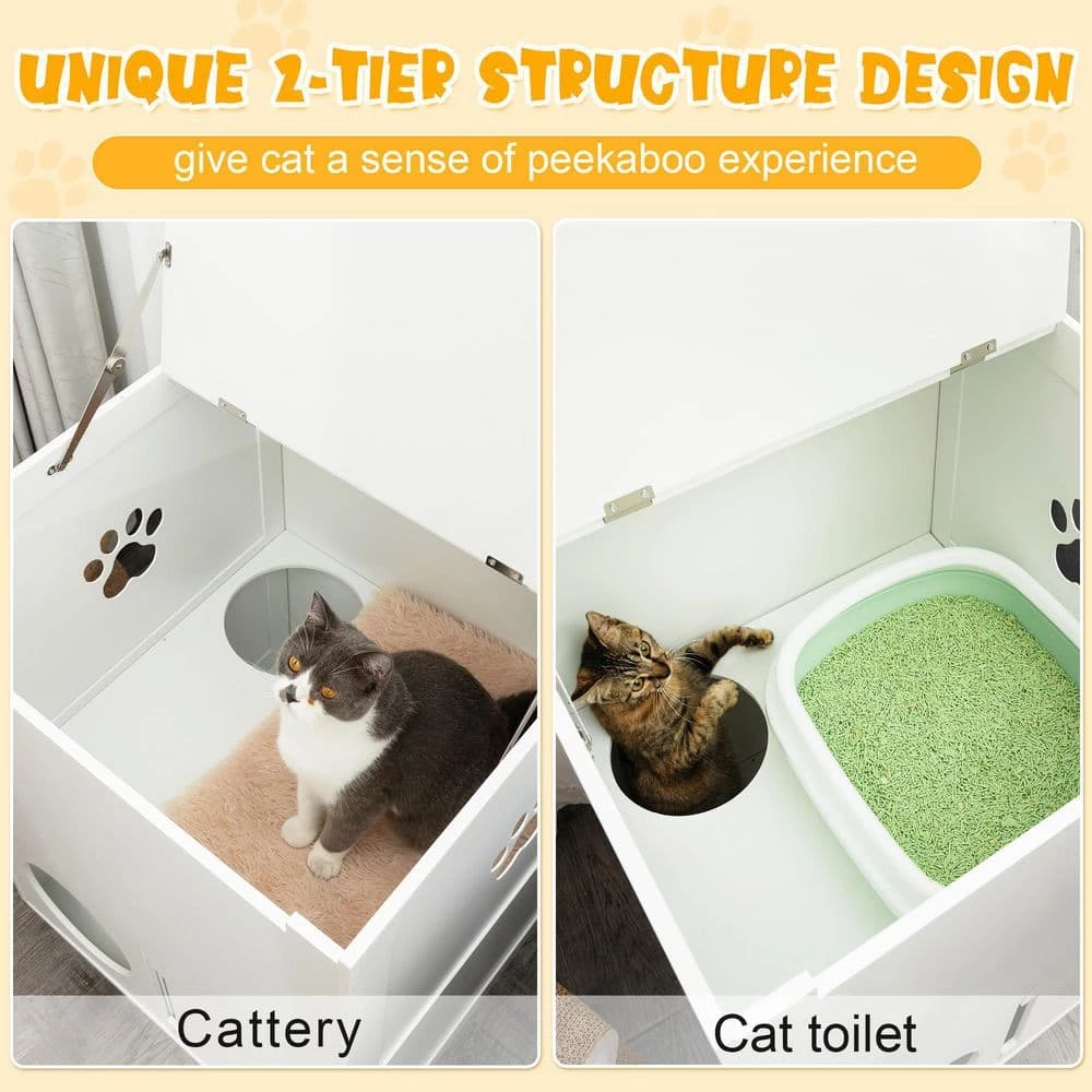 - 2-Tier spacious enclosure: free to jump up and down with the inbuilt round access the box cover allows your kitten to do their business convenient while confining most litter inside the non-woven box is added to store litter scoops and pet items