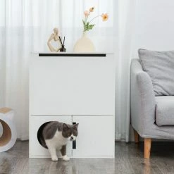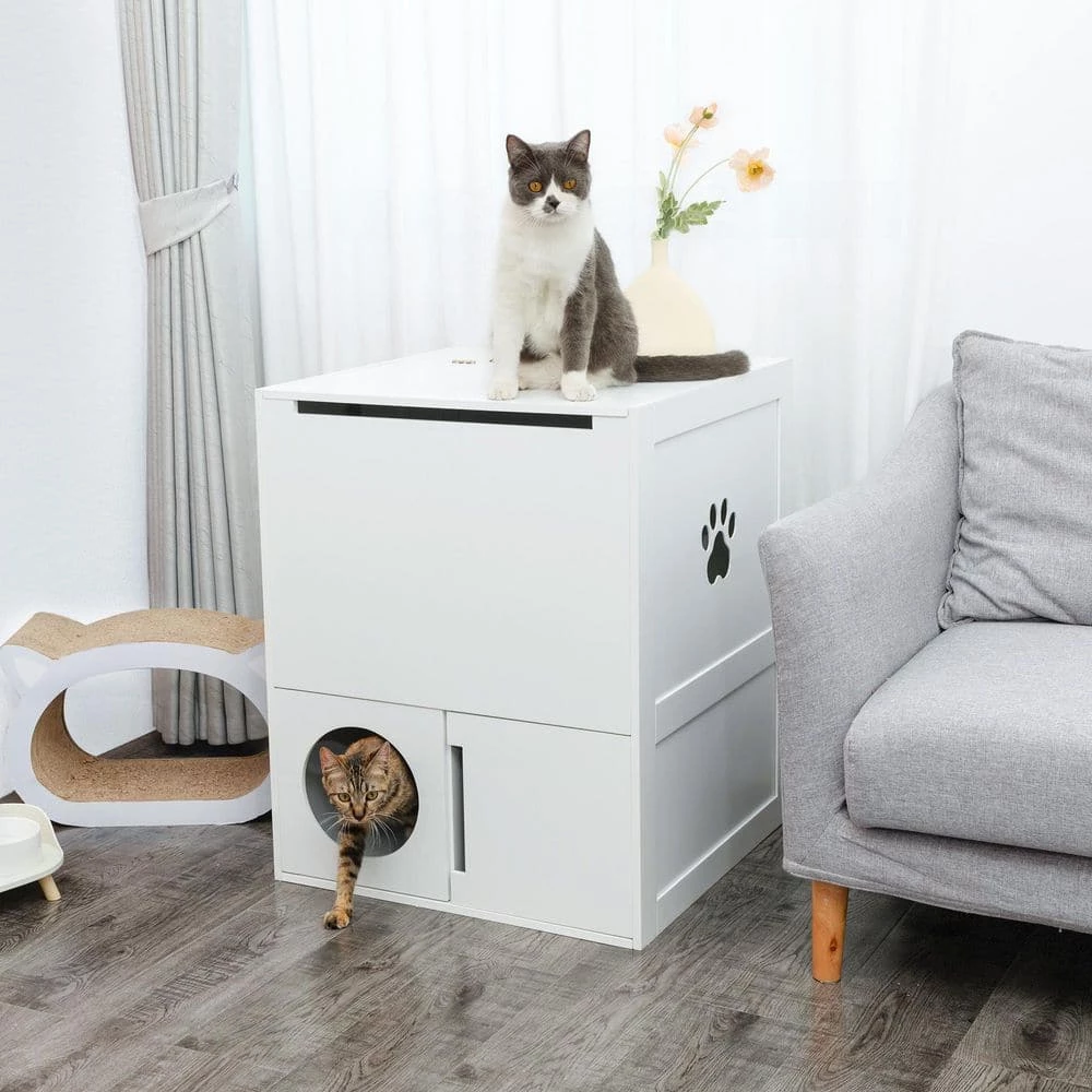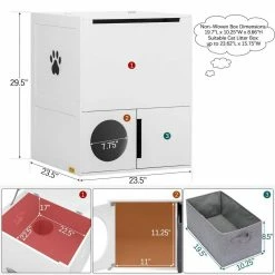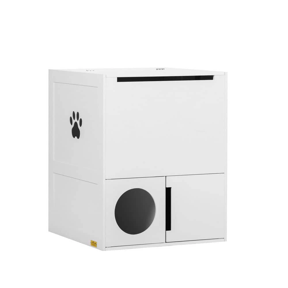 - Modern cat privacy furniture: this white cat litter box with a large size of 23.62 in. L x 23.62 in. W x 29.53 in. H is a great solution to cover up your unsightly and smelly cat litter box, keeping your home cozy and your kitty happy