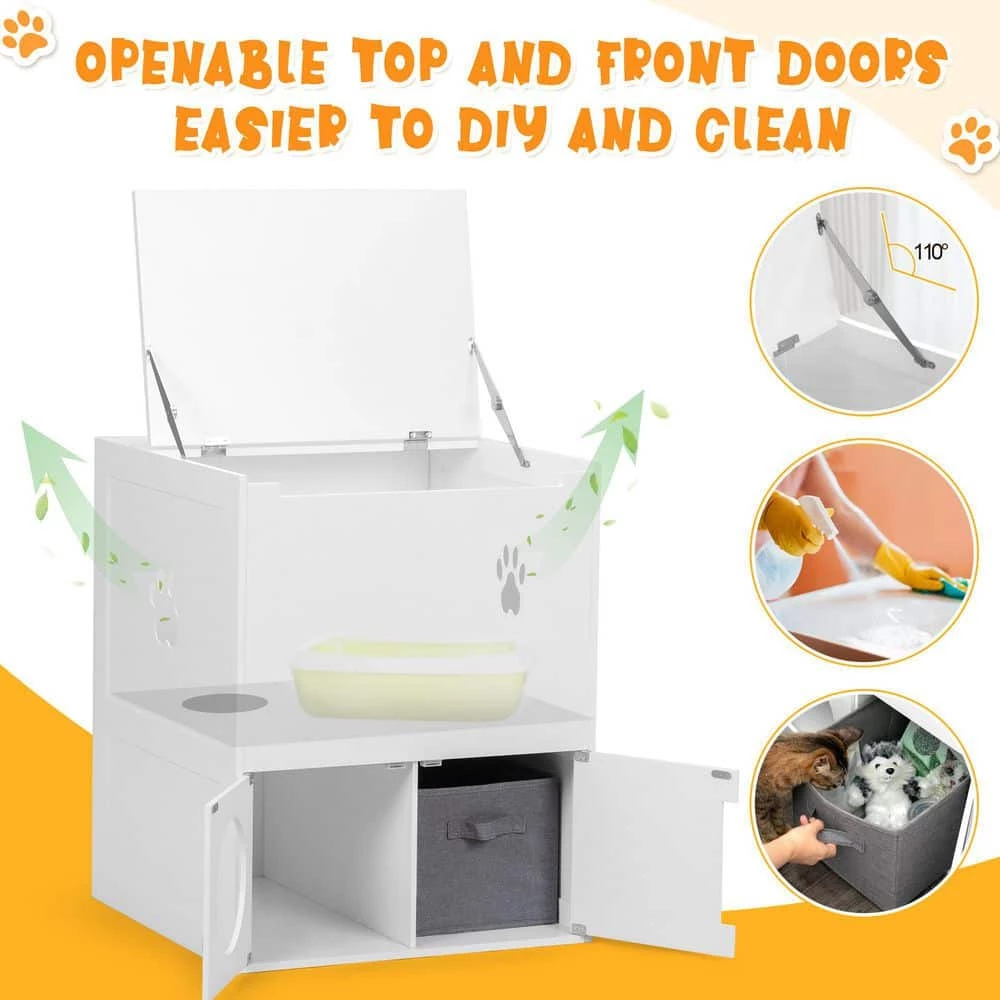 - Easy to assemble for versatility: according to the detailed manual, you can set up the cat washroom easily and quickly with the flat top and modern style, this box cover can also be used as an end table in living rooms or a nightstand in bedroom