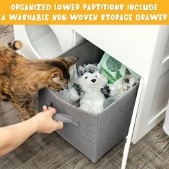 As a home decor piece to hide the messy stuff of your fur babies, this COZIWOW 2-Story Cat Washroom with Storage is a great option that not only provide a private space for cats to do their business but also a furniture-grade cabinet along your sofa or bed. Flip up the top to put in a litter box. Your cat can easily climb up and down with the inner hole, reducing the amount of litter outside of the box and onto your floors. with this hidden cat litter box, your hassle of unpleasant smells and messes can be effectively solved.