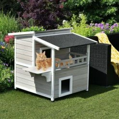 This wooden cat house is suitable for outdoor and indoor places. Asphalt roof offers shelter to cats during rainy and scorching days. And slope angle roof will prevent the rainwater from accumulating. It accommodates 1 to 2 cats.