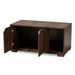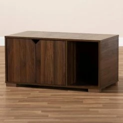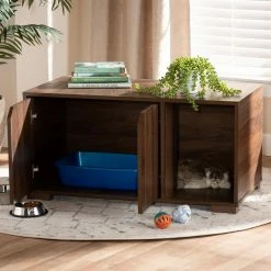 Smart and practical, the Jasper house keeps that unpleasant litter box tucked away. Built from sturdy wood, the Jasper showcases a sleek walnut brown finish that complements any interior color palette. 2-doors provide easy access to clean the litter box, while an open space adjacent to the doors allows your cat to come and go as they please. Featuring a clean, modern design, the Jasper is well suited for any space. The Jasper house is made in Malaysia and requires assembly.