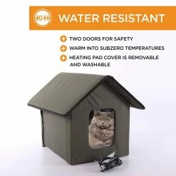 - Featured 20-Watt MET safety listed heated bed inside the K&H outdoor heated kitty house keeps your kitties warm, even in sub-zero temperatures
