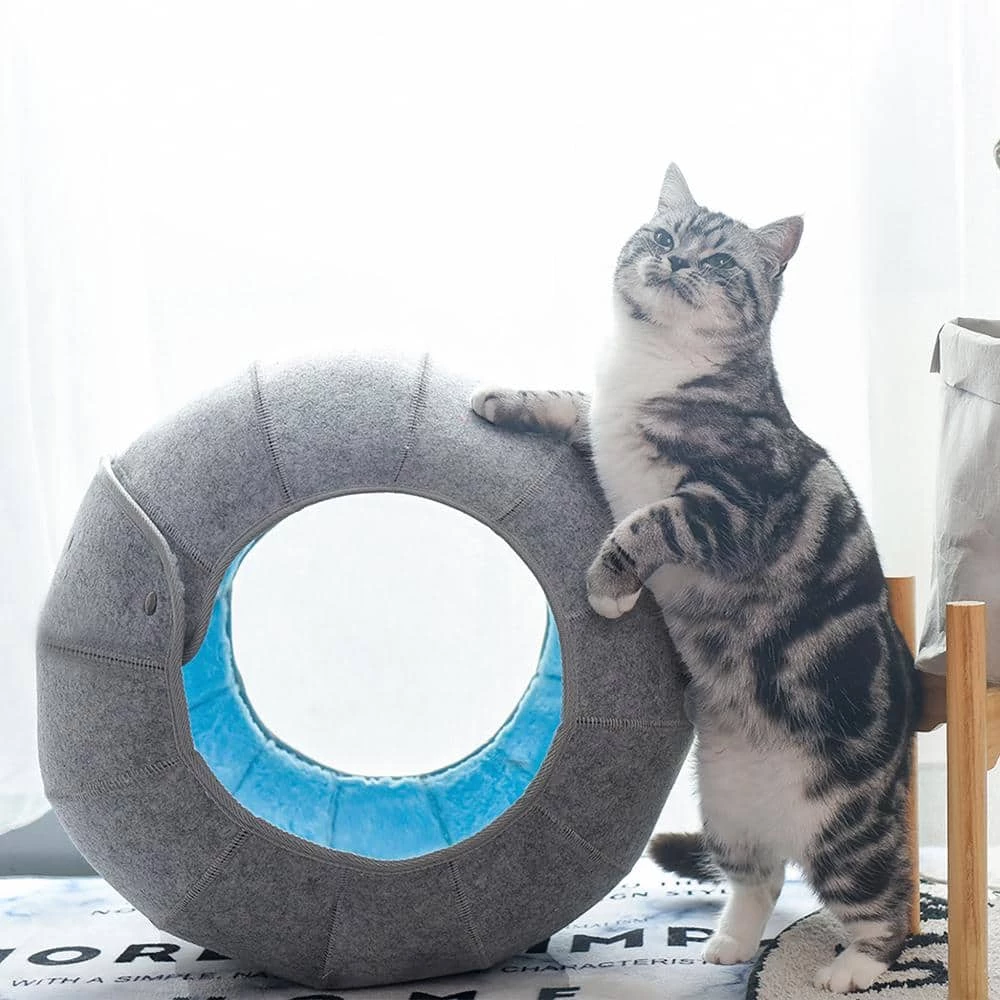Interesting product with ball shape, changeable shape. Meet cat’s life habits, drillable. Foldable, moisture-proof, scratch-resistant, easy to store.