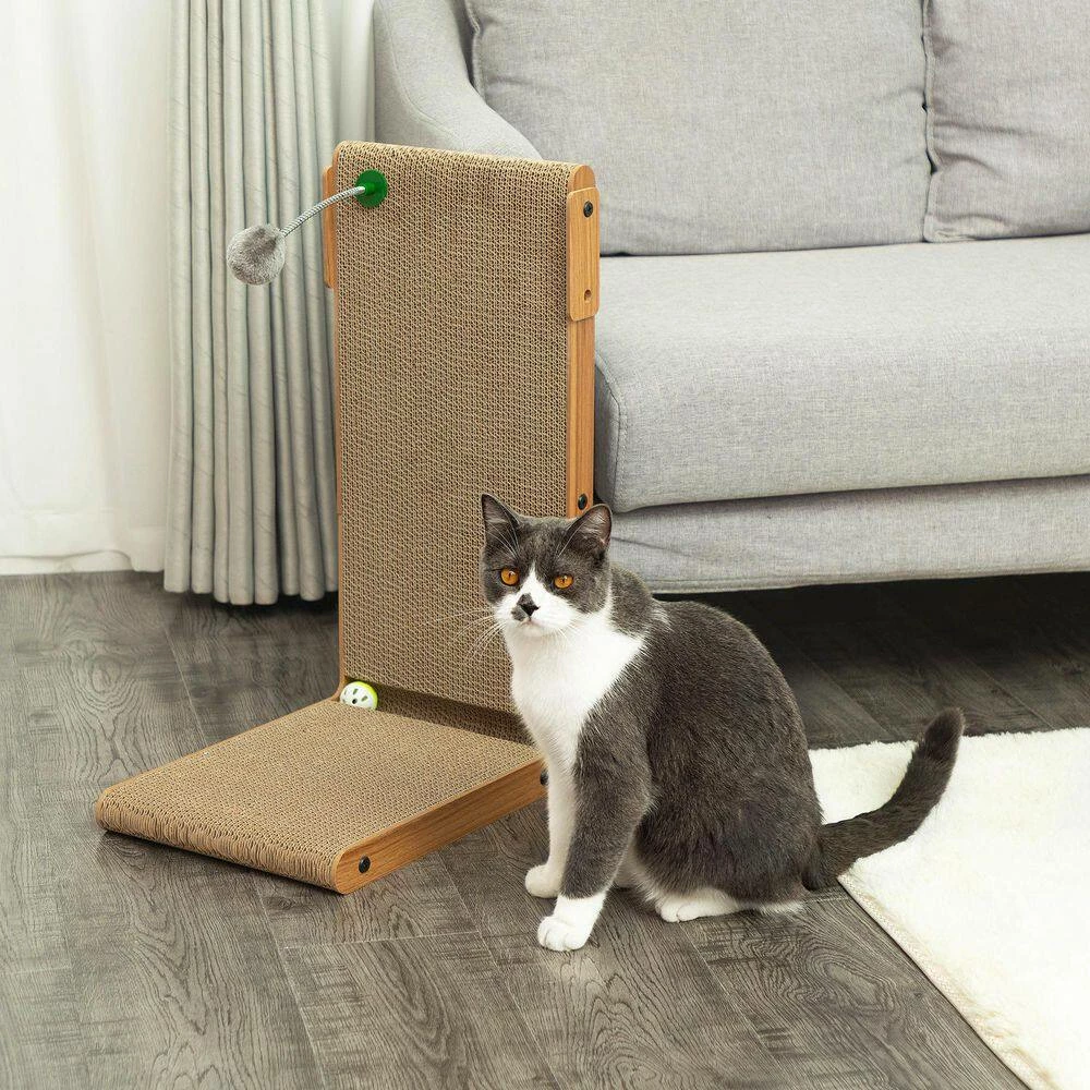 - Vertical cat scratcher: this cat scratcher uses an L-shaped design and stands 23.5 in. tall, which makes scratching easier for your cat plus, both sides of each board can be scratched to make the most of it also doubles as a lounger or cat bed
