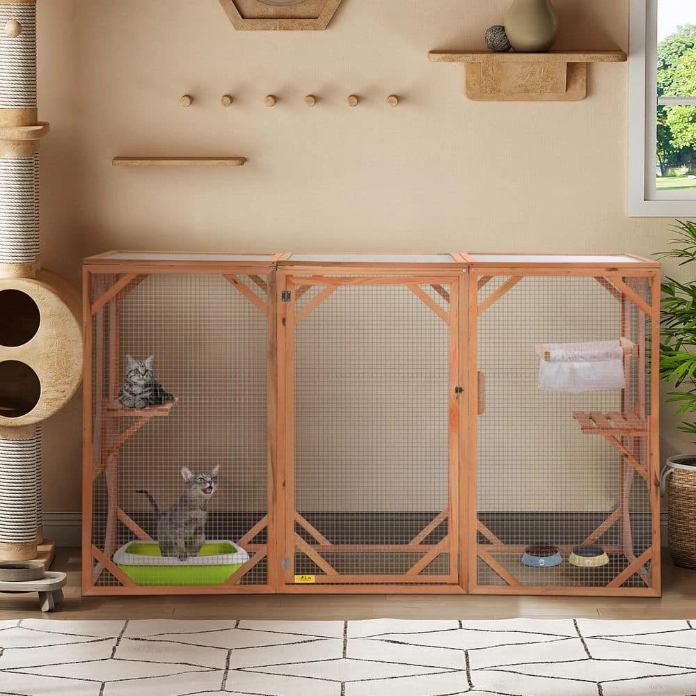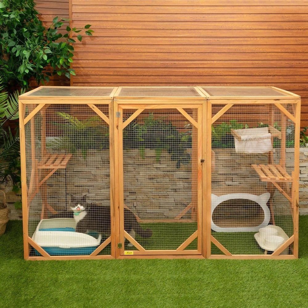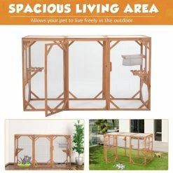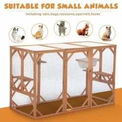 - Sturdy wire-mesh wood enclosure: designed with corner reinforce, this cat run made of solid pinewood and enclosed with strong galvanized wire mesh is a stable and durable enclosure to accompany your pets as they grow up