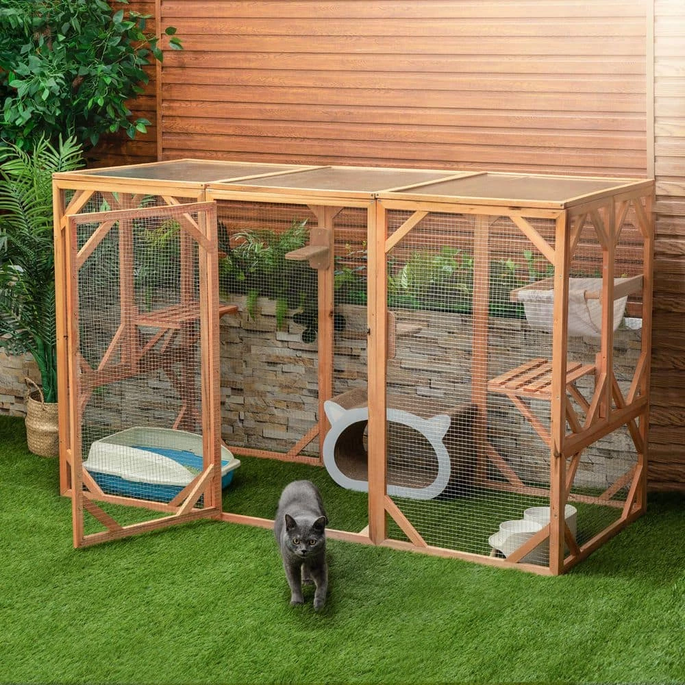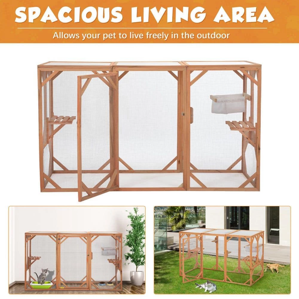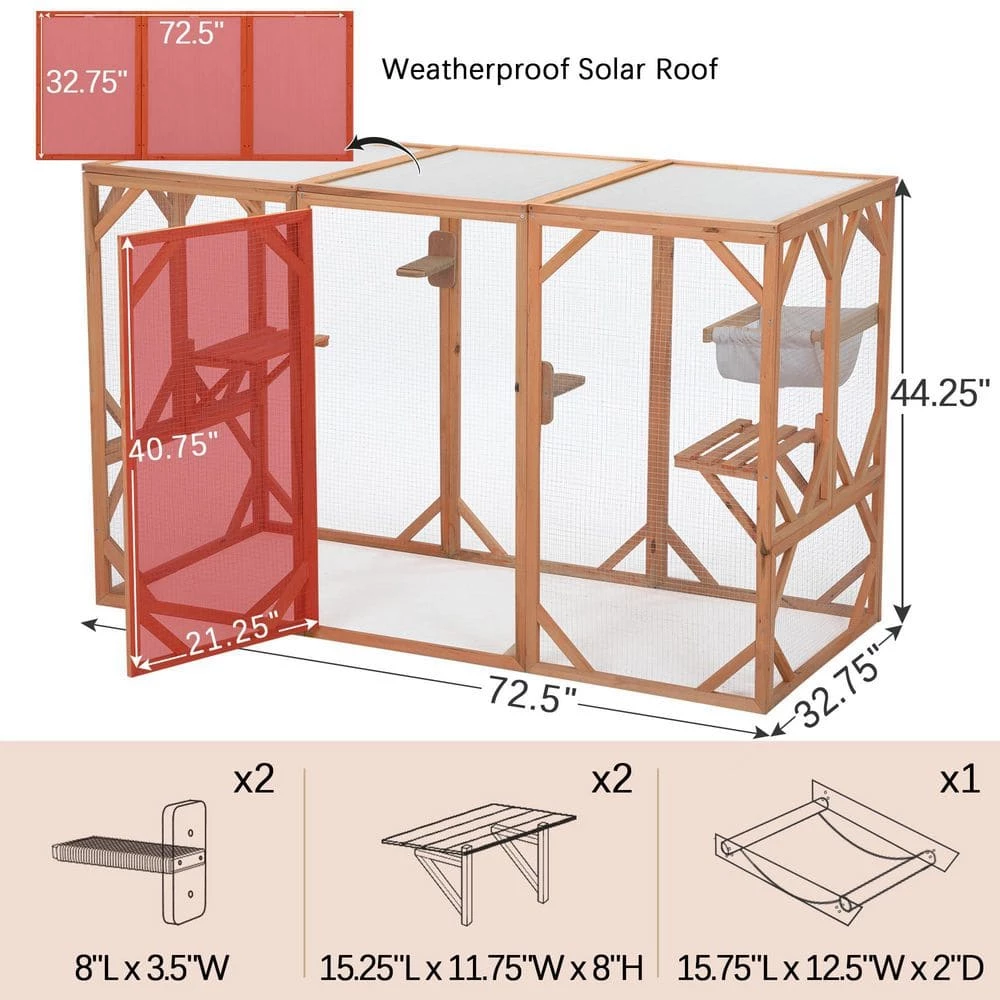 - Large outdoor house for cats: perfect to keep your pets safe and comfortable, this backyard cat catio designed with 2 platforms, 2 sisal rope perches and a hammock offers a spacious run for multiple cats