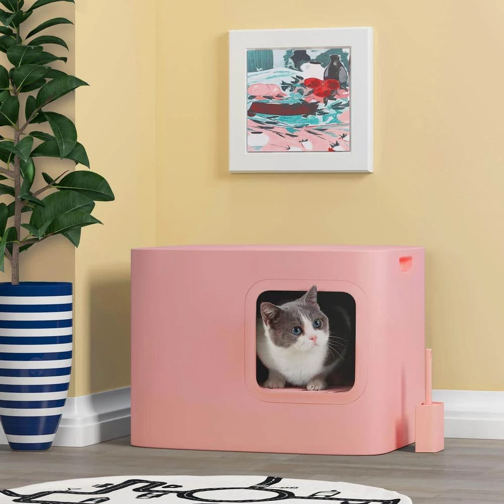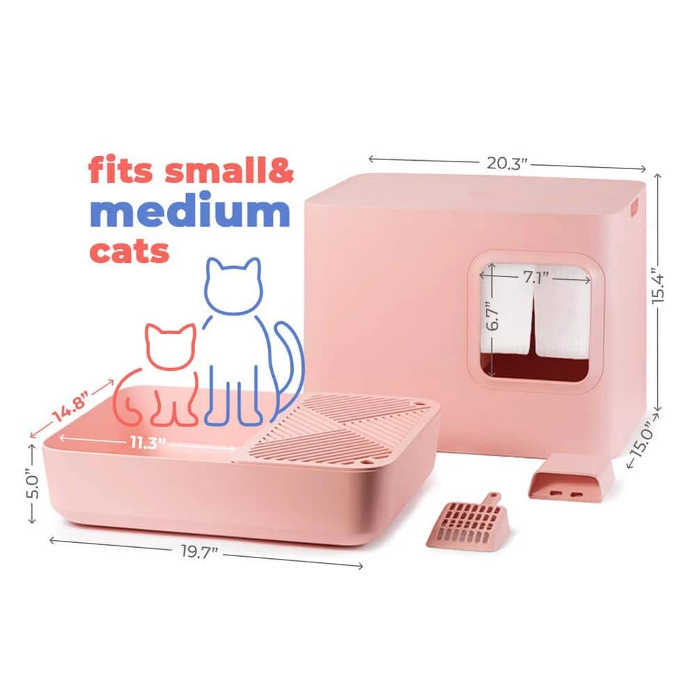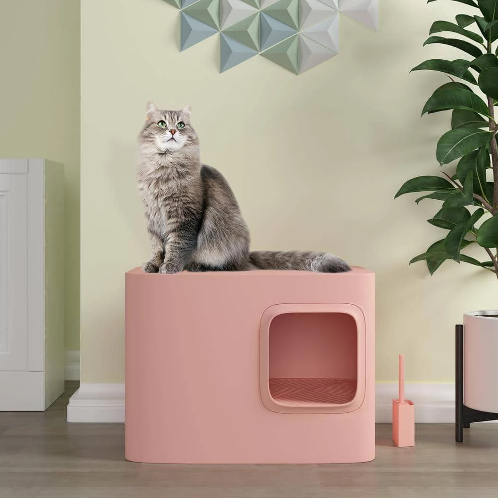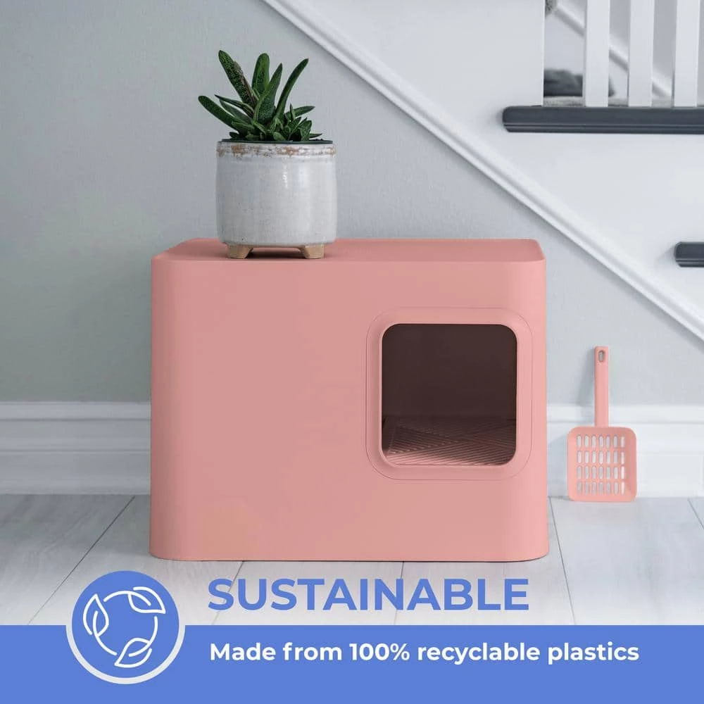 The Meowy Studio Cat Litter Box has a beautiful design that blends seamlessly with any interior style. It has a modern elevated design that accents any space and offers a balance between functionality and style for both cats and cat owners. It has closed structure effectively blocks odor. It is sustainably made from 100% recyclable high grade plastics.