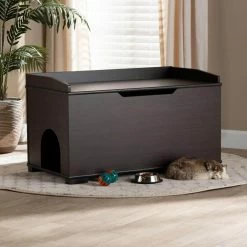 Maintain the lifestyle of your cat without sacrificing style with the fantastic design of the Mariam cat house. Made in Malaysia, the Mariam is crafted from sturdy wood. This handy piece features a lift up top with a cut-out handle for convenient maintenance, while the side entrance provides easy access for your cat. Requiring assembly, the top shelf offers ample surface space to organize cleaning supplies. Instantly enhance the life of your cat with the ergonomic Mariam cat house.