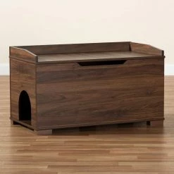 Maintain the lifestyle of your cat without sacrificing style with the fantastic design of the Mariam cat house. Made in Malaysia, the Mariam is crafted from sturdy wood. This handy piece features a lift up top with a cut-out handle for convenient maintenance, while the side entrance provides easy access for your cat. Requiring assembly, the top shelf offers ample surface space to organize cleaning supplies. Instantly enhance the life of your cat with the ergonomic Mariam cat house.