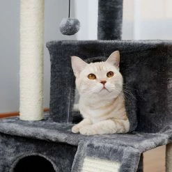 This Luxury compact activity tree is the ultimate all-in 1 Spot for your feline to do all the thing they love from lounging, playing and scratching. It comes with 1 extra-large perch covered with raised cushion rim that provide a wonderful spot for them to lounge and enjoy the sunshine. When it is nap time, the private cozy apartment creating a sense of security for them to have a better sleep. The fully wrapped scratching post covered with natural sisal that satisfy their natural urge to scratch and develop a good scratching habits while the fuzzy dangling pam ball add extra fun.