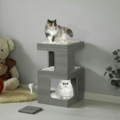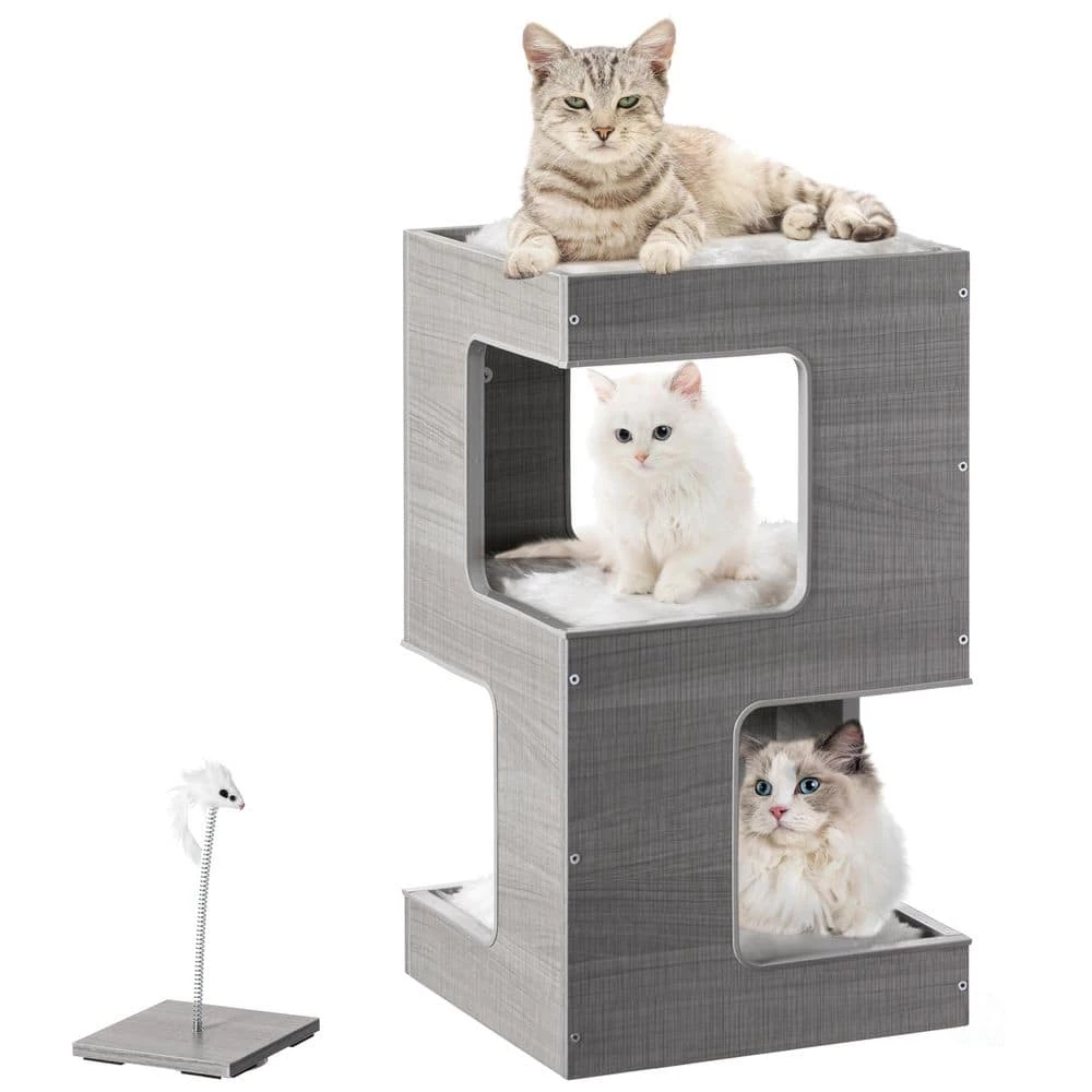 - Simplistic design: the cat tree is made of minimalistic styling and has the perfect finish to make the furniture eye catching and desirable a simple gray colored stand easily fits into your home