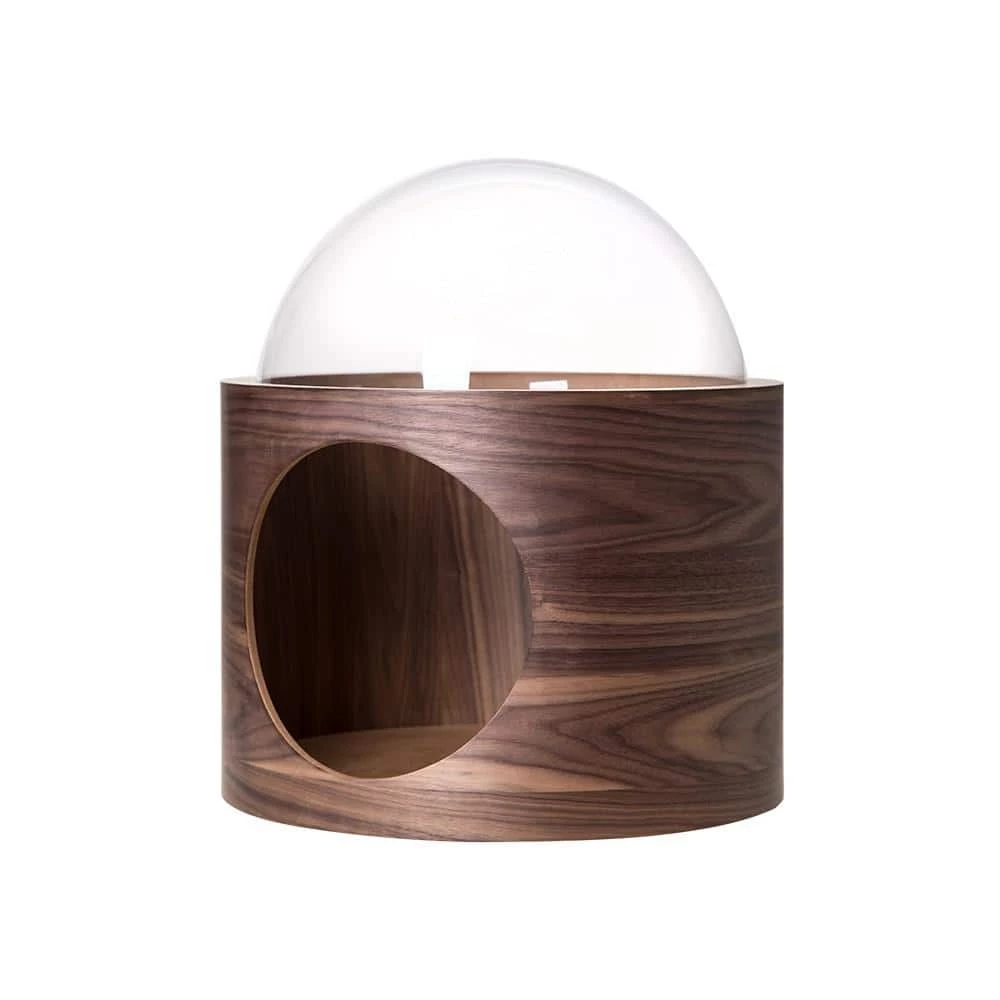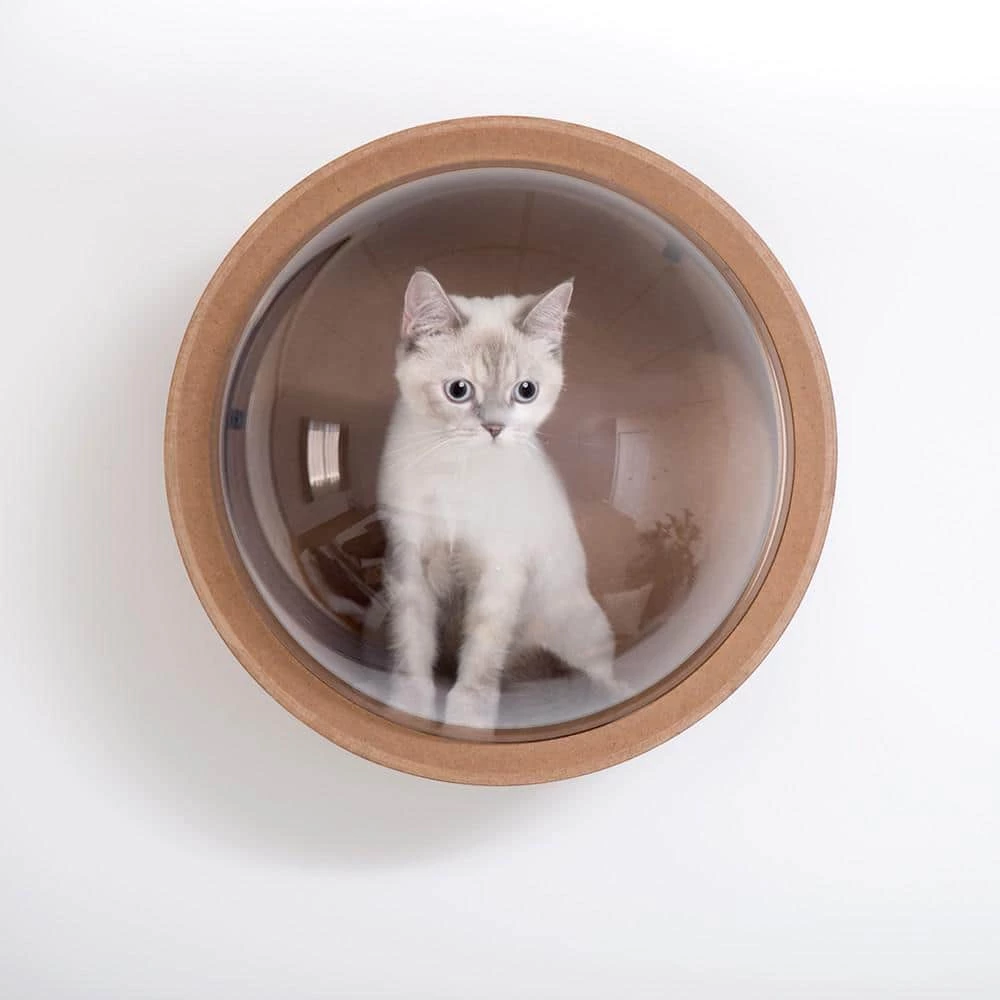 MYZOO Small Spaceship Gamma Wall Mounted Walnut Cat Bed Open on the Right by AndMakers