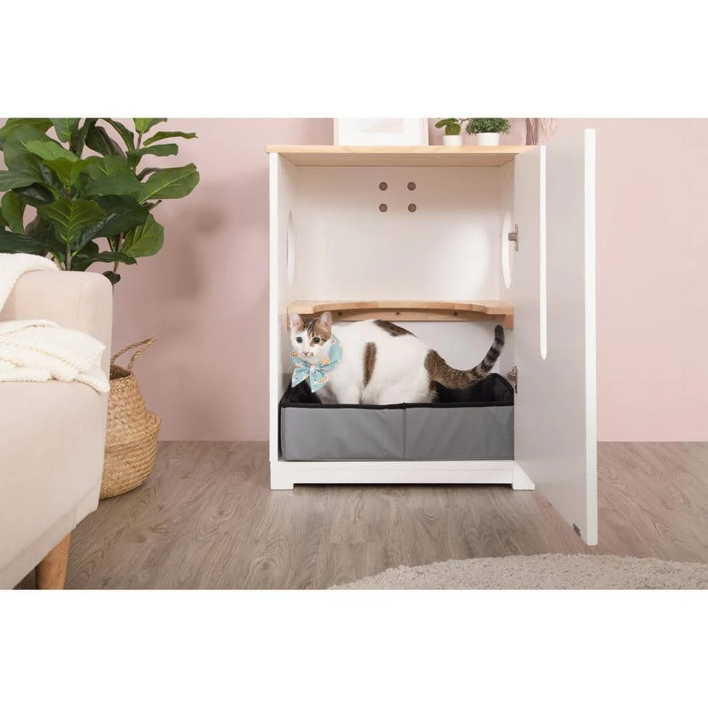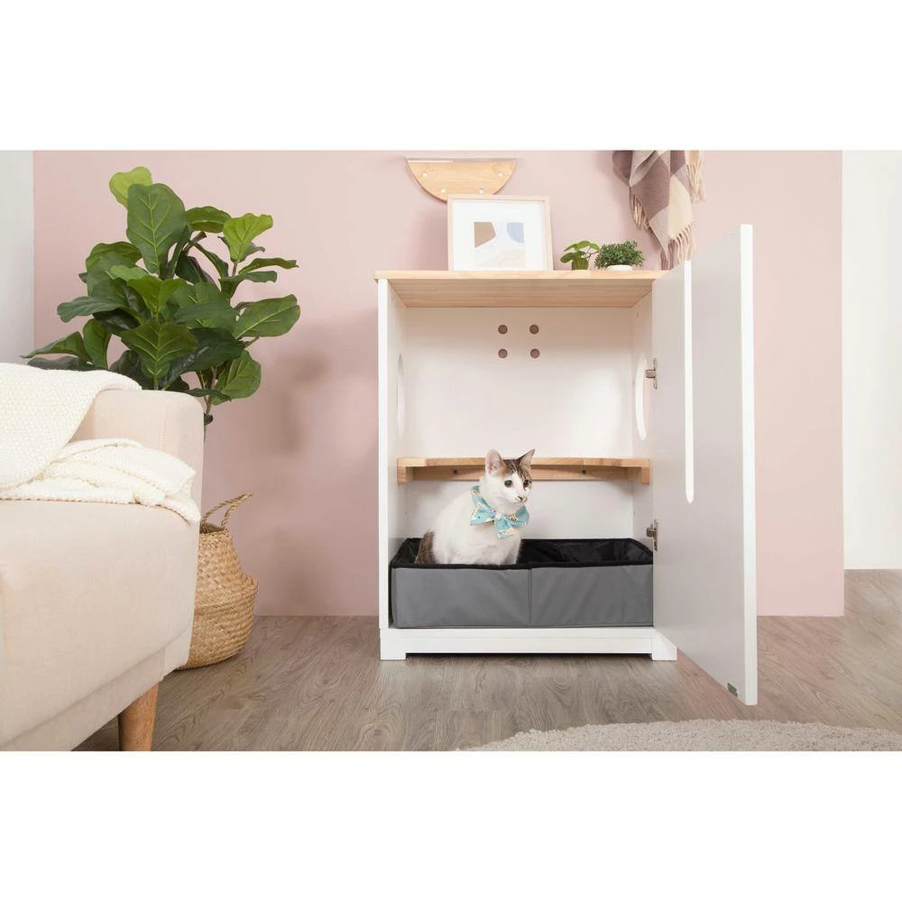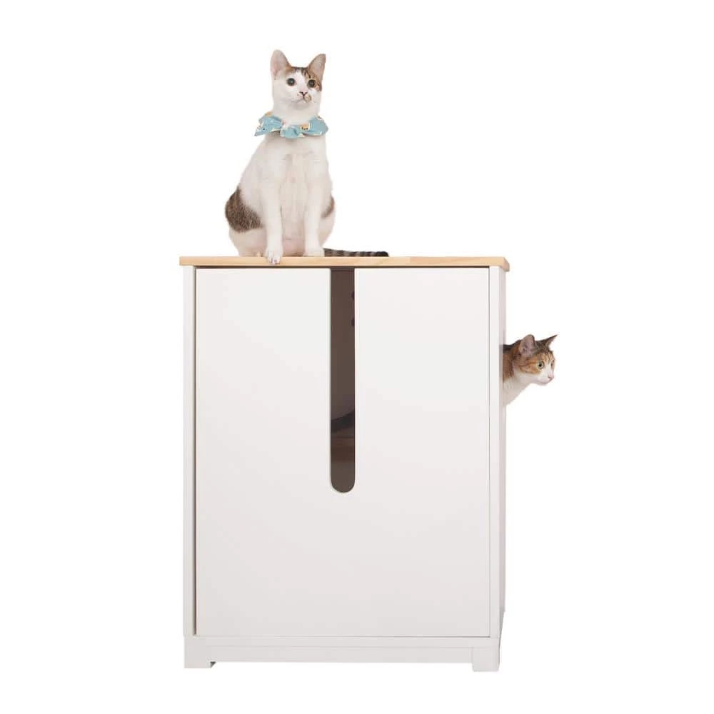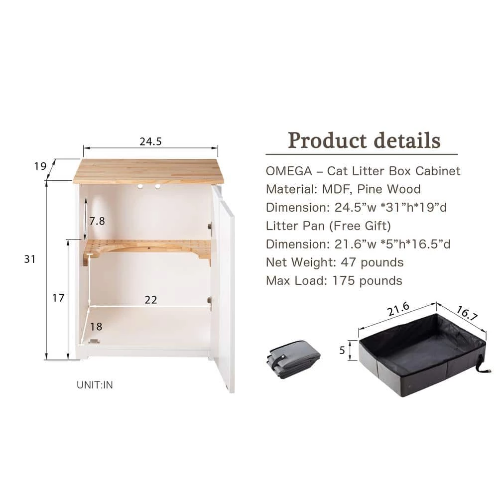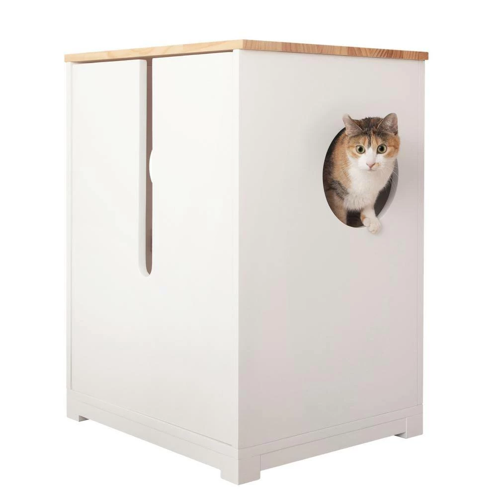 - Stylish covered enclosed space: with a scandinavian-style design, the omega encloses the litter box, storing it out of sight, containing the smell and keeping dogs and children away, enclosure hides away your kitty’s litter box and offers a stylish, modern appearance, wide top can hold potted plants, lamps and more