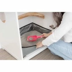 While most enclosed cat litter boxes pose problems that might result in a cat’s refusal to use them, the Omega solves these issues through design. with 2 entrances and air holes in the front and back panels, it offers better air circulation and reduce noise baffling. Internally, there is a U-shaped perch that gives cats space, allows them to jump in and out of the litter box and catches tracked litter. The included foldable litter box allows for easy clean-up and provides enough space for even the biggest cats.