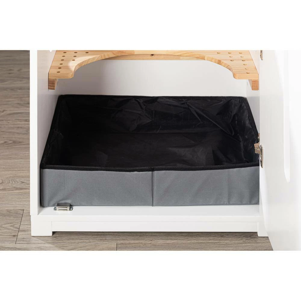 - Easy to clean: the unique design of the u-shaped litter catcher perch that gives cats space, allows them to jump in and out of the litter box and catches tracked litter with the safe waterproof paint on cover, it’s easy for owner to clean the spraying urine and the cat litter catcher