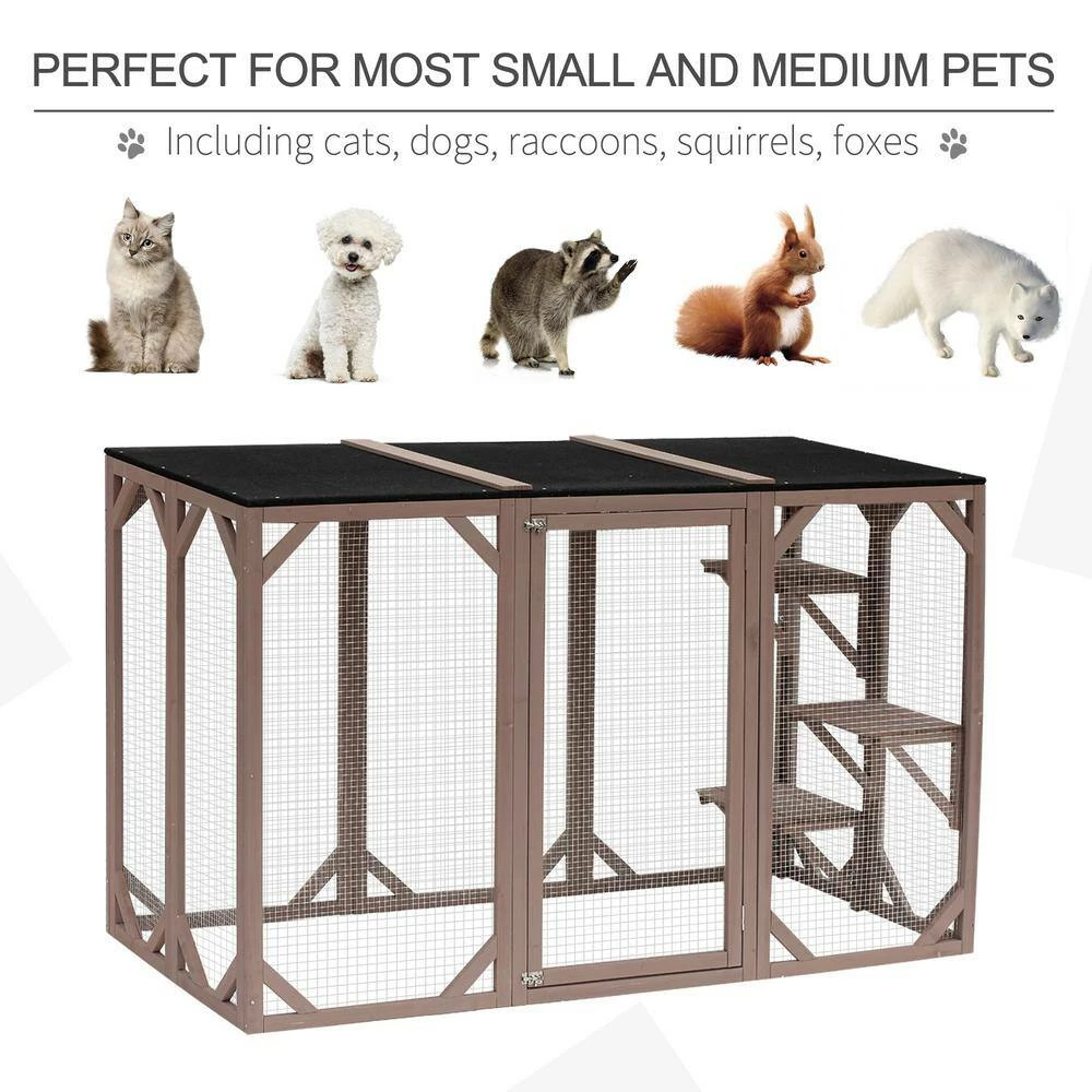 This PawHut cat house lets you open the back door patio for your kitties, giving them their own catio to roam around in. The large space can give furry felines a place to play while the sunlight streams in. Offering room to walk around, combined with triple tiered ledges, this mesh cat box enclosure will gift your pets the luxury of climbing and lounging in the fresh air. For their comfort, the asphalt roof protects against dreaded cat-hated rainwater, while the housing keeps them safe outside.