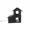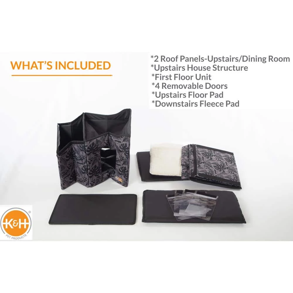 Outdoor 2-Story Kitty House with Dining Room Gray Leaf Print Medium by K and H Pet Products