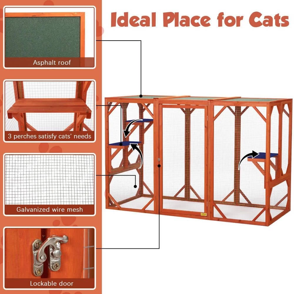 - .Safe and Stable.: The asphalt roof keeps out sunlight and rain. Cats will have a good time outdoors without being directly affected by the weather. The mesh keeps away predators, gives cats a sense of security.