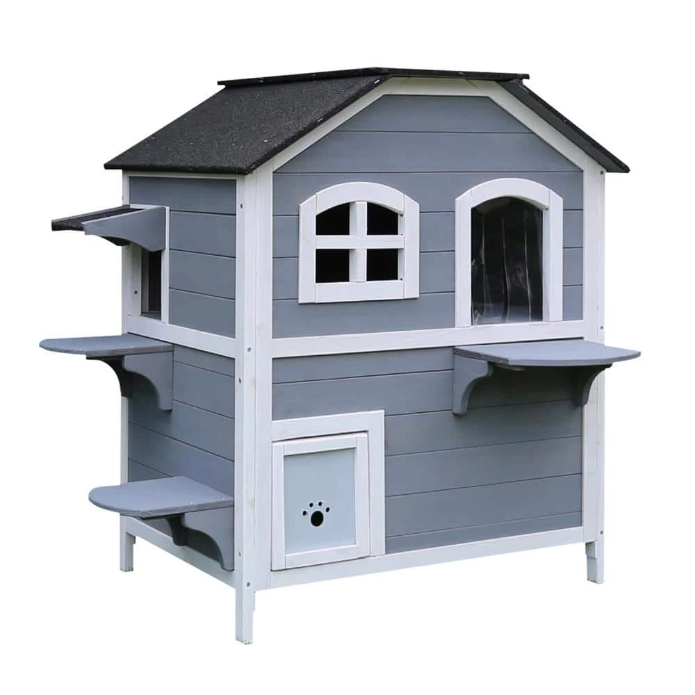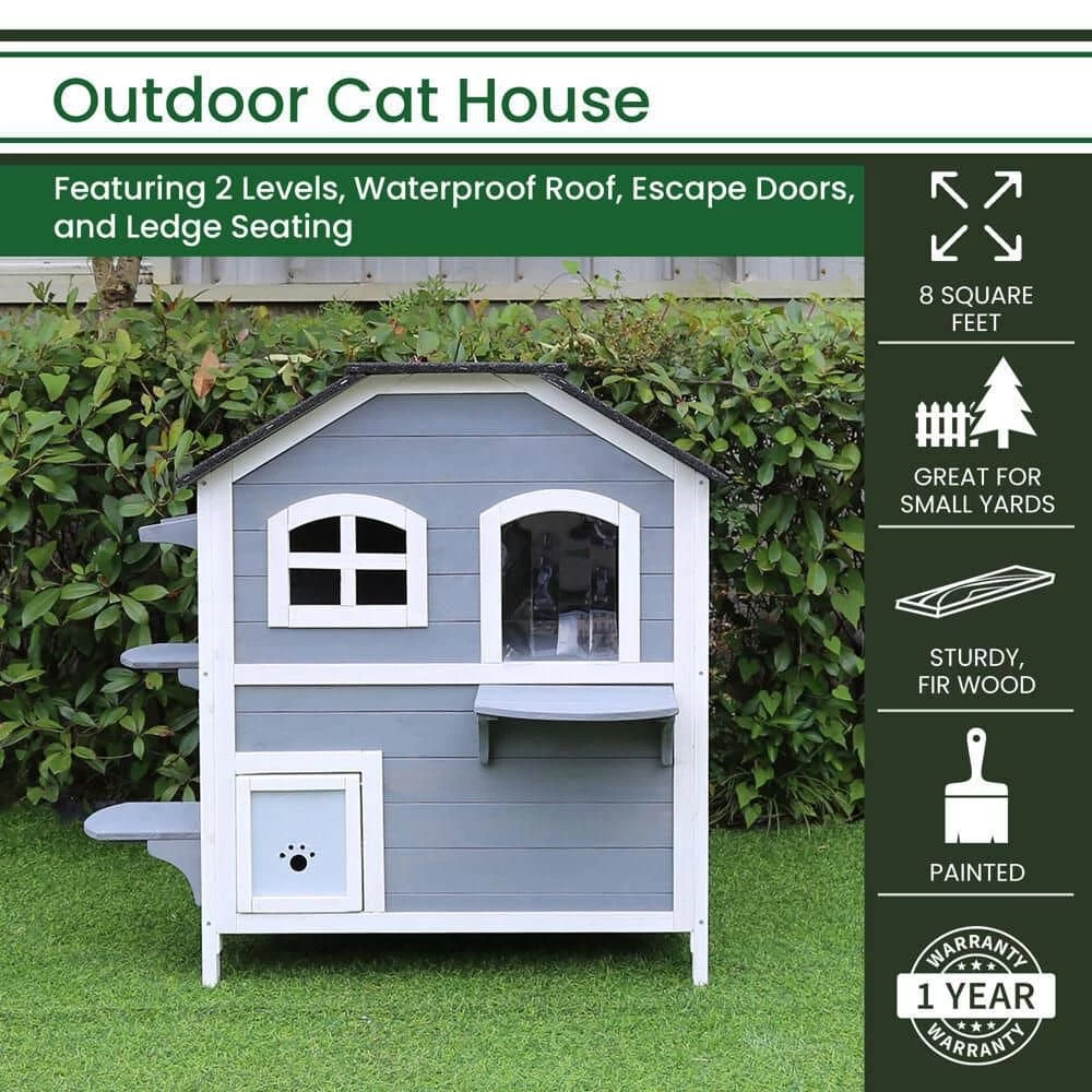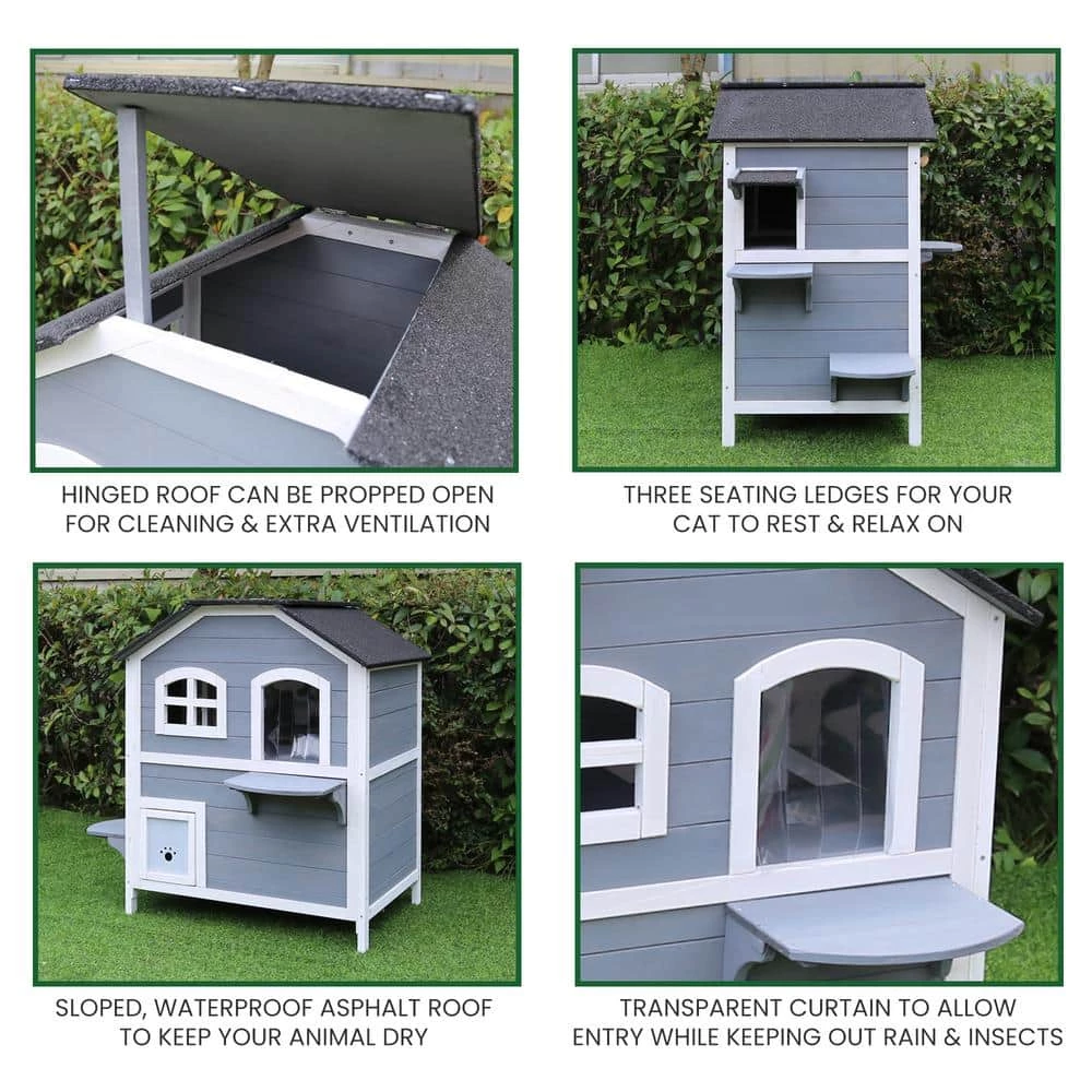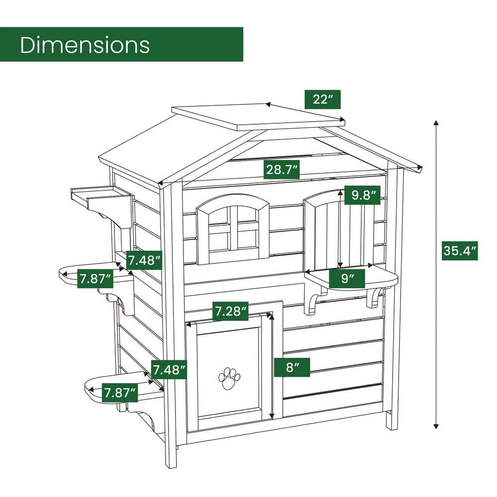- EFFICIENT DESIGN: Your cat will thank you for bringing home this oasis! This 2-story cat house is the perfect place to allow your pet the freedom and privacy to move freely. It offers a hinged roof for comfortable sunbathing or protection from inclement weather. The fir wood design will keep your loveable furry friend safe from outside intruders. Perfect for indoor use as well, if you cat is more of a homebody.
