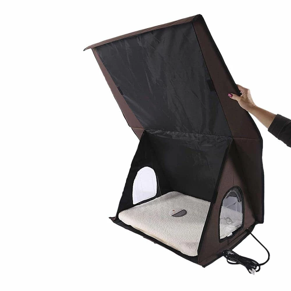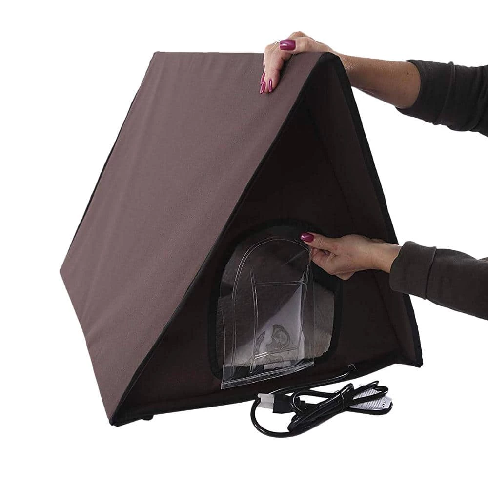 This large, multi-cat kitty house is the perfect shelter for any outdoor cat. The waterproof fabric and unique overhang roof design helps keep cats warm and dry and offers a comforting shelter that is large enough for up to 4 kitties. Includes and accommodates a medium K&H Lectro-Soft Outdoor Heated Bed. Available heated and also unheated, we can’t think of anything more comforting to an outdoor cat, A place to call home.