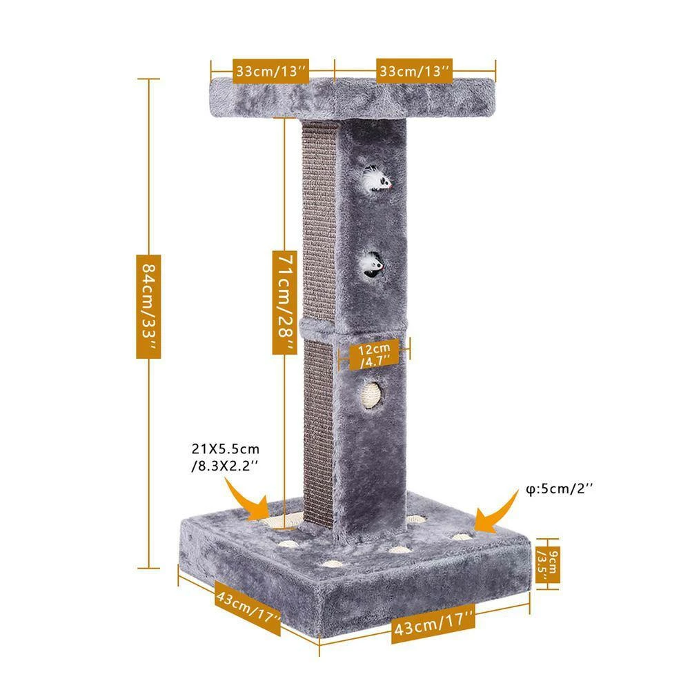 - Cozy perch for a good rest: different from the common scratching post, we specially design a large and cozy perch on the top, the dimension 13 in. x 13 in. is big enough for an adult cat, after a long time of playing and scratching, your feline can climb to the top to have a napping or sleeping