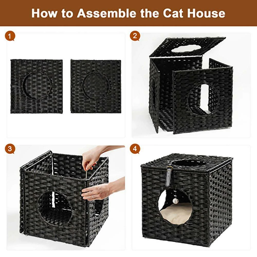 - Package comes with illustrated instructions, this cat house can be assembled in a few simple steps, with a hex wrench, no need to bring your own tools, the top panel can be opened, with a belt, you can choose whether to fasten the top panel or directly open