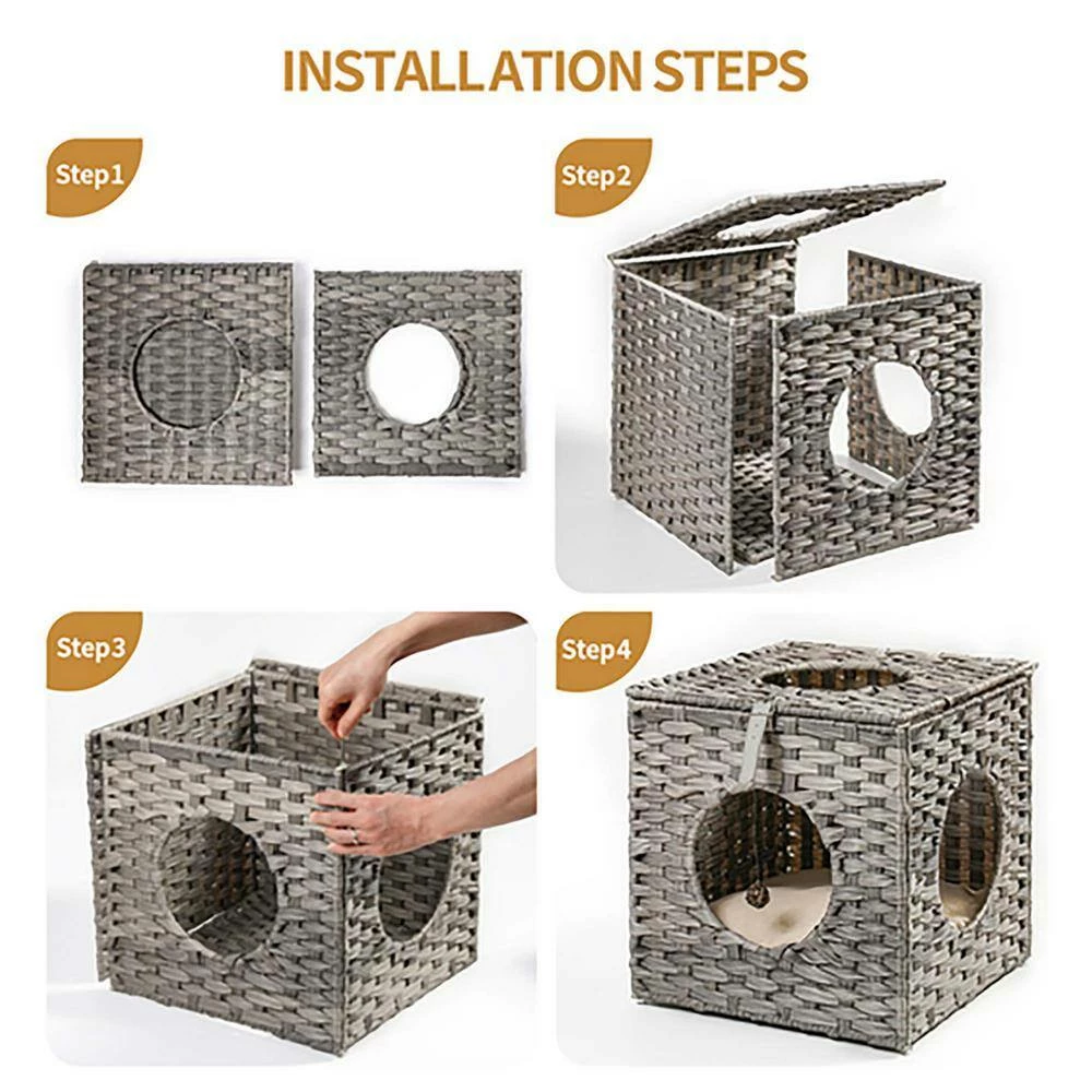 - Package comes with illustrated instructions, this cat house can be assembled in a few simple steps, with a hex wrench, no need to bring your own tools, the top panel can be opened, with a belt, you can choose whether to fasten the top panel or directly open