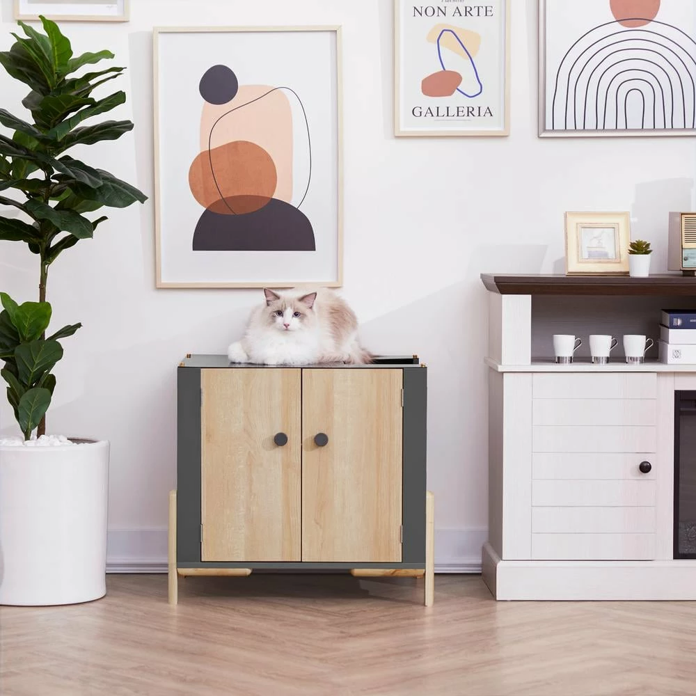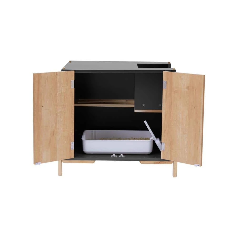 - Multi-functional: this large 2 tone double door cabinet functions as both a cat litter box enclosure and a beautiful end table