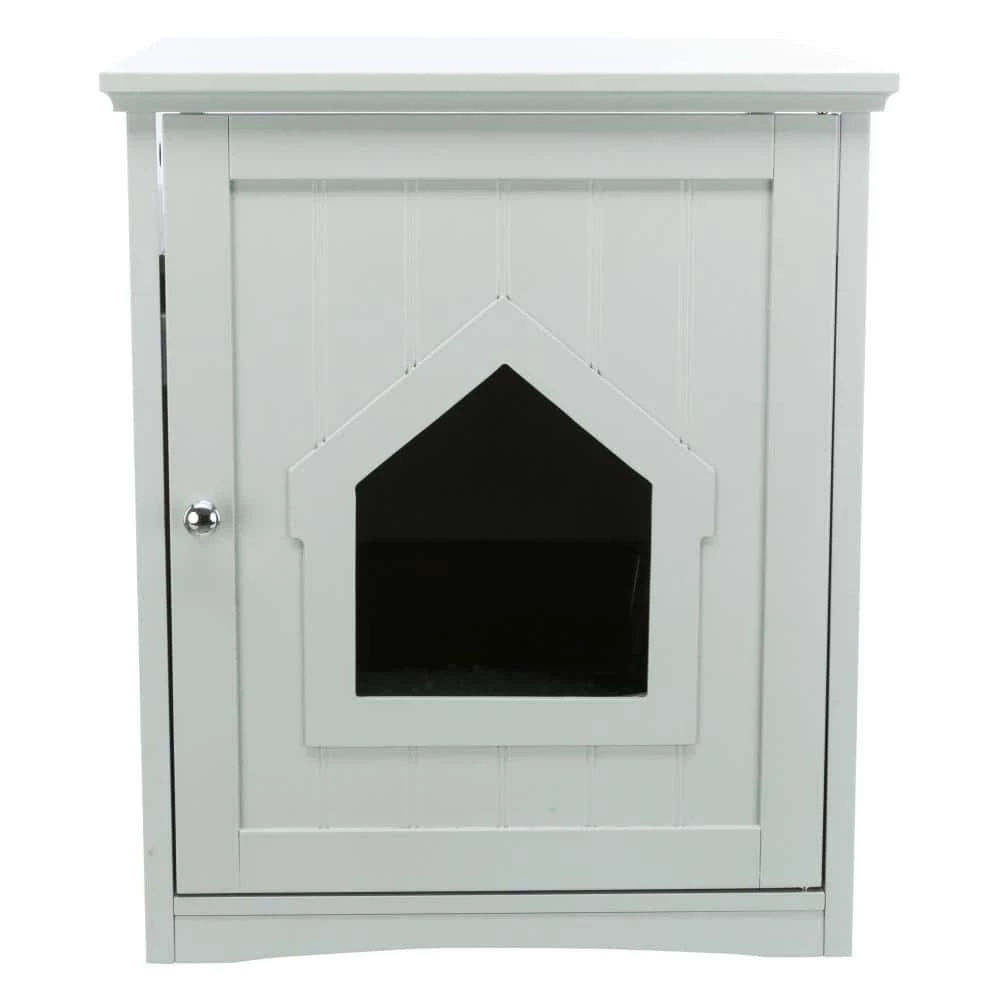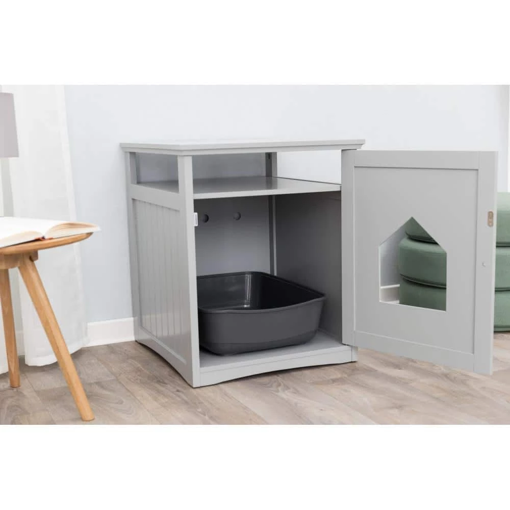 TRIXIE’s elegant Standard Wooden Litter Box Enclosure with Top Shelf is both sturdy and functional and can also be used as an indoor pet home. The enclosed configuration creates a sense of security for your pet. The attractive and durable varnished wood finish will coordinate with any home decor. The shelf on top provides extra storage for pet toys and accessories. Constructed using solid MDF wood with a smooth veneer finish. Quick and easy assembly. All hardware included. 1-year warranty. Suitable for standard size litter boxes. Litter box not included.