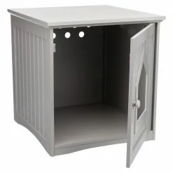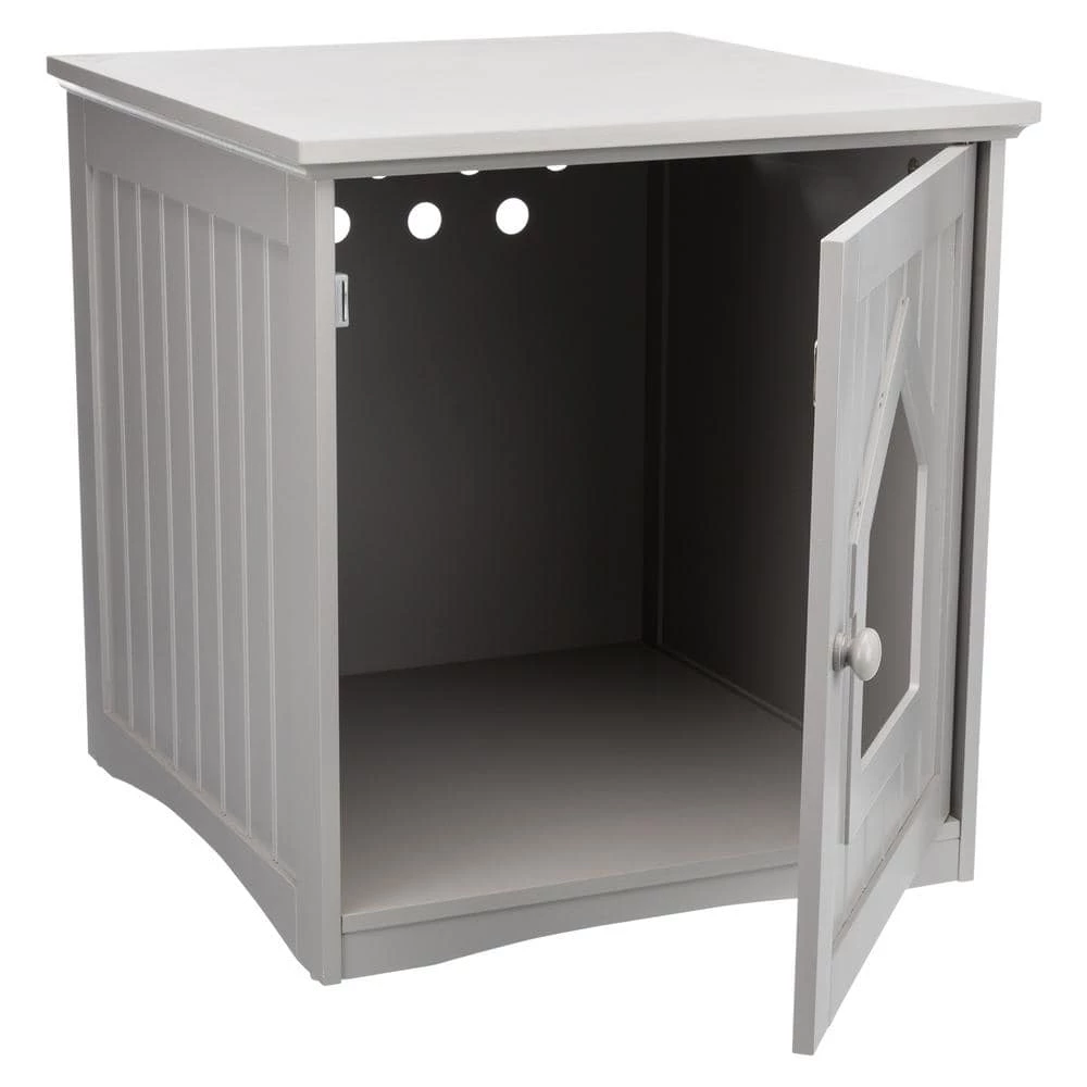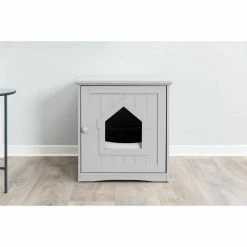 TRIXIEs elegant Wooden Litter Box Enclosure is both sturdy and functional, and can also be used as an indoor pet home. The enclosed configuration creates a sense of security for your pet. The attractive and durable varnished wood finish will coordinate with any home decor. Constructed using solid MDF wood with a smooth veneer finish. Quick and easy assembly. All hardware included. 1-year warranty. Suitable for standard size litter boxes. Dimensions: 19.25 in. x 20 in. x 20 in. Litter box not included.