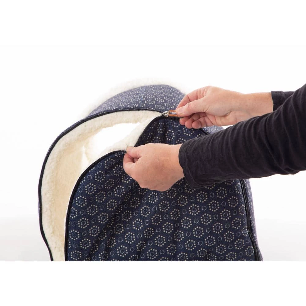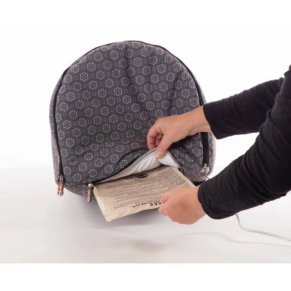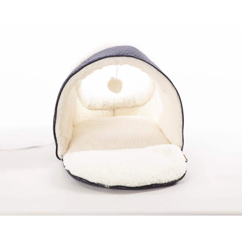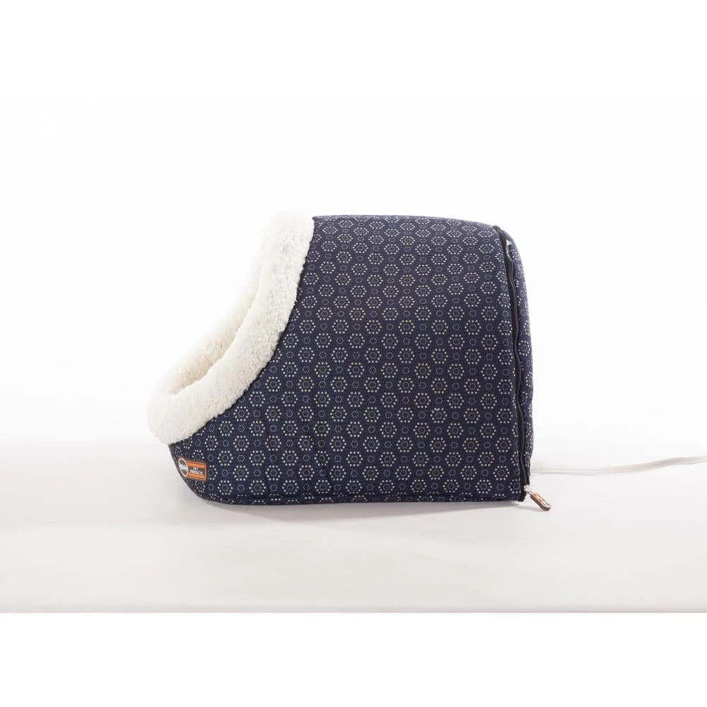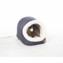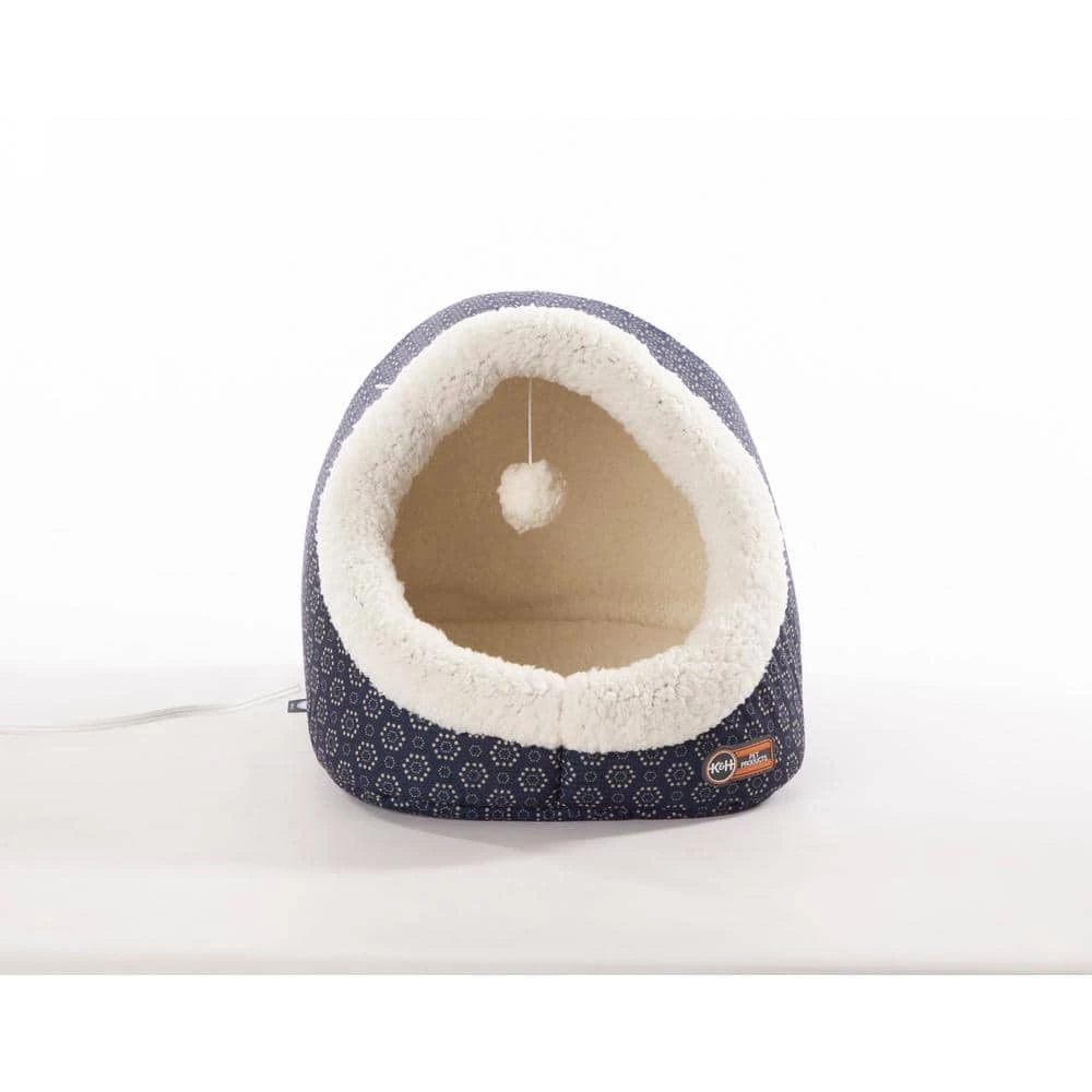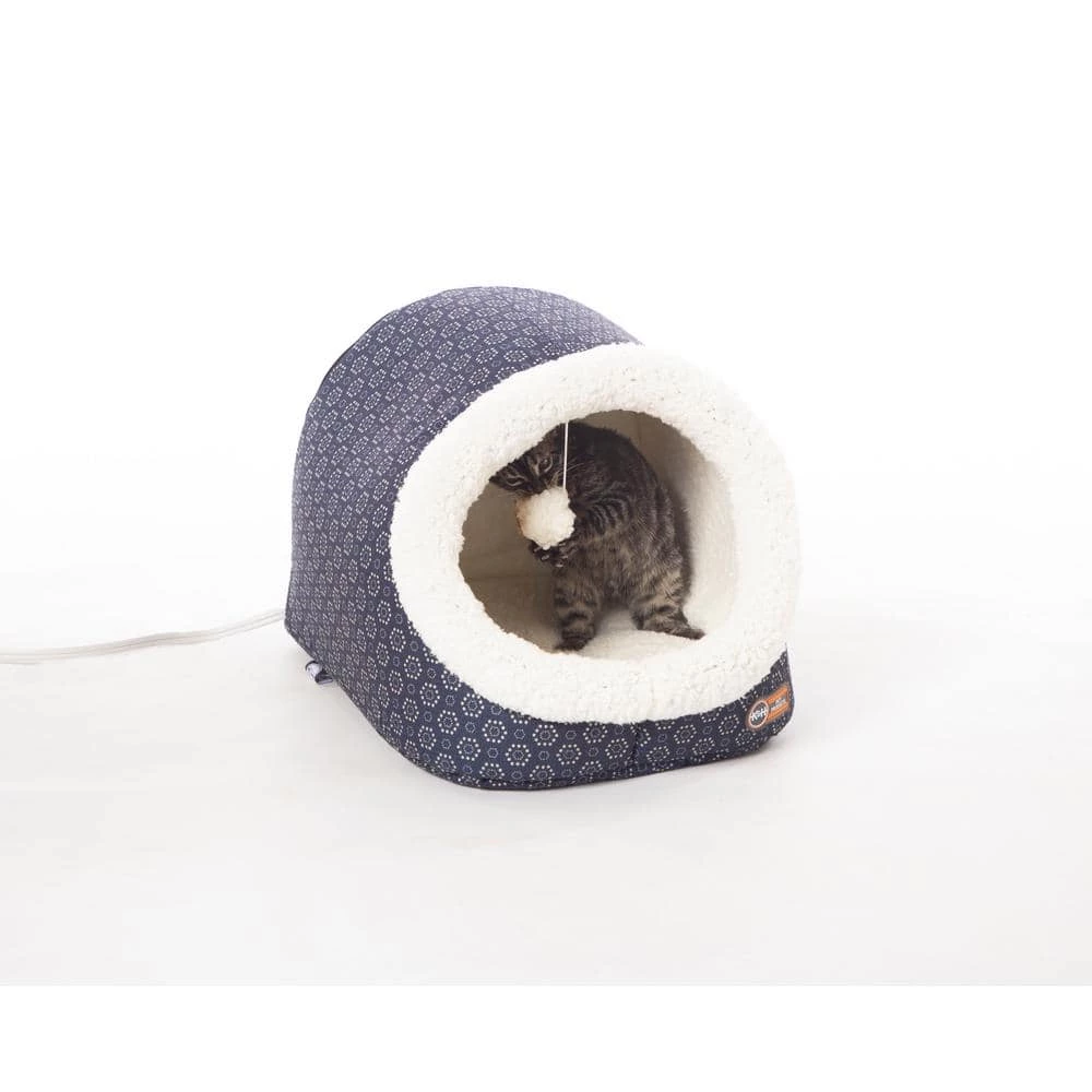 The Thermo Pet Cave by KandH Pet Products is available in both a heated and unheated version. This unique cat bed has a backdoor that can be left unzipped for cats that prefer tunnels. The Pet Cave is designed to offer a cozy place for cats to hide and sleep. The interior is completely covered in Ultra-soft fleece and includes a hanging plush toy that can be used for playing and batting around. The outside is covered in soft luxurious polyester. The entire bed is machine washable. Available in 2 cute colors-gray or navy geo flower print. MET Listed. Excellent for cats or even as a small dog bed. 1-year limited warranty.