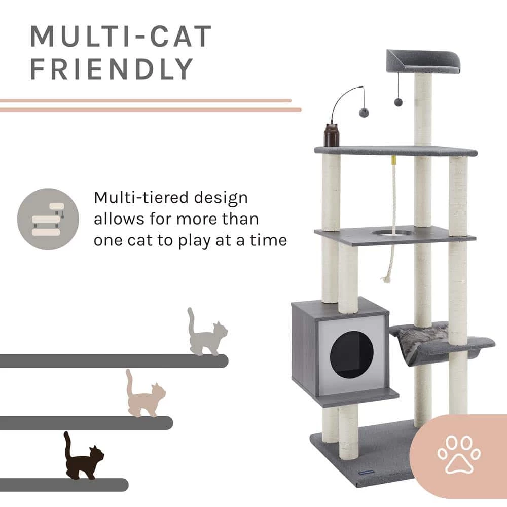 - Design: Multi-tiered design can comfortably support multiple cats at once