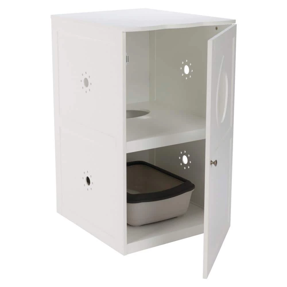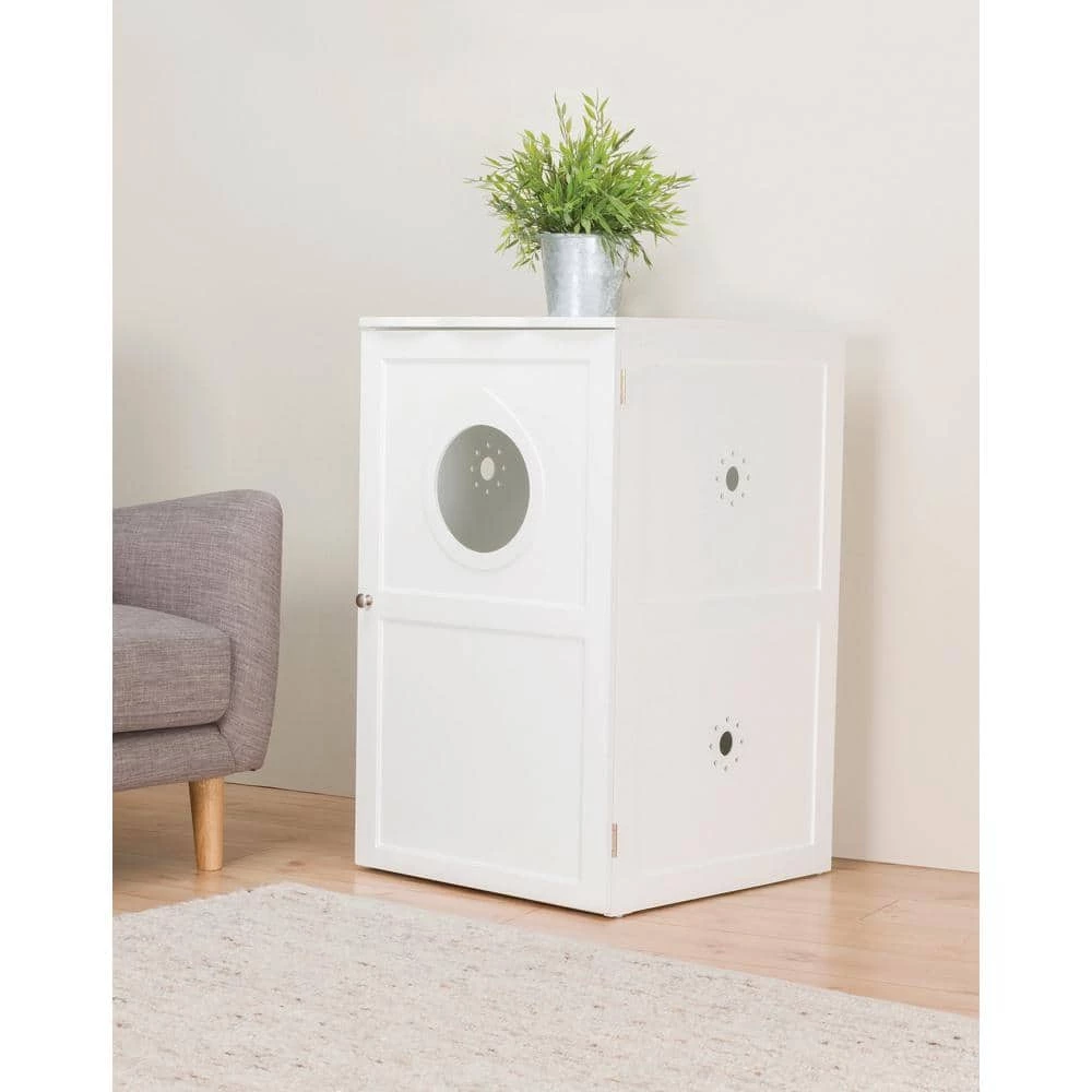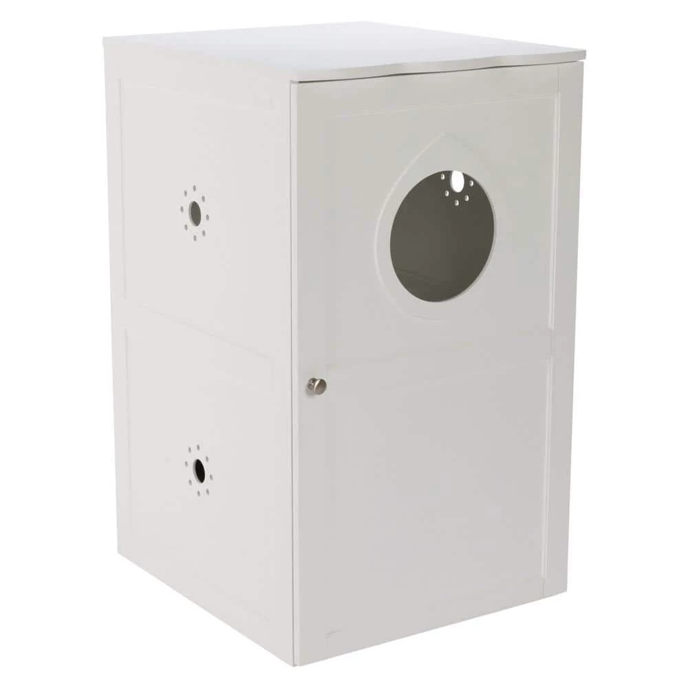 TRIXIE elegant Wooden 2-Story Cat House and Litter Box is both sturdy and functional, and can be used as an indoor pet house or cat litter box. The enclosed configuration creates a sense of security for your pet, while the attractive and durable varnish wood coordinates with any home decor. 1-year warranty. Suitable for standard size litter boxes. Quick and easy assembly. All hardware included. Materials: wood, metal.